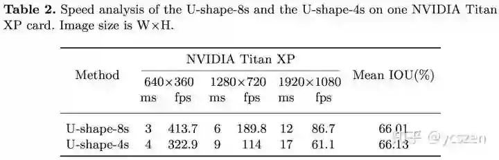 此处,U-shape-8s就是文中所展示的结构,U-shape-4s则是普通的U-shape设计,即融合了更多stage特征。可以看到,U-shape-4s的速度会明显慢于U-shape-8s.