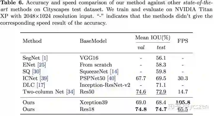 虽然BiSeNet是实时性算法,但是它的精度甚至比一些非实时性算法还高。