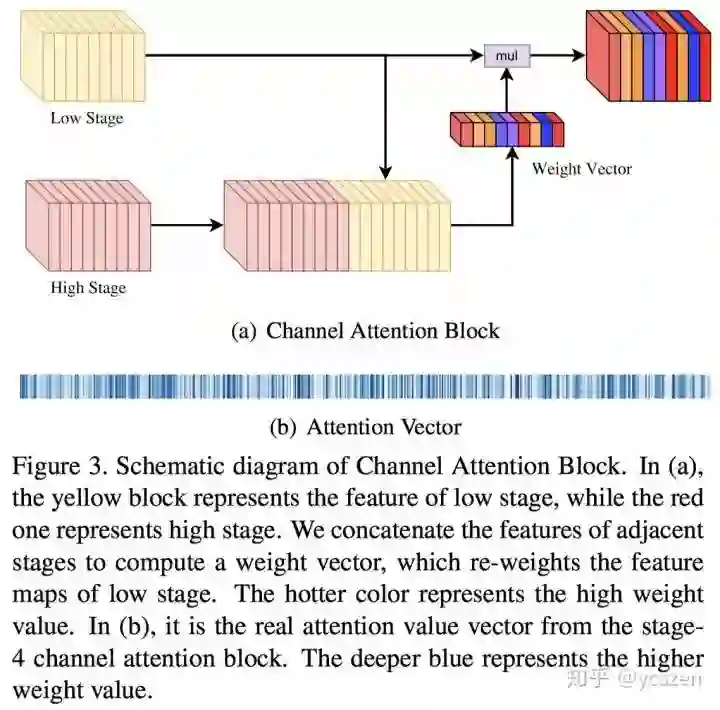 CAB利用相邻Stage的特征计算Channel Attention然后对Low-stage的特征进行筛选,如图7所示。因为文中认为,High-stage的特征语义信息更强,更具有判别力。