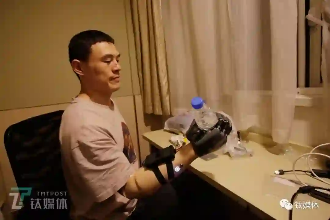 测试过程中,倪敏成用假手抓起一瓶矿泉水,通过长期合作和测试,这对他来说已经轻而易举。