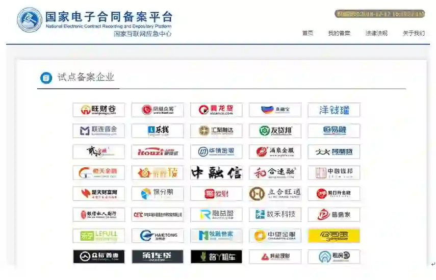 在这个背景下,国家应急中心于2017年6月上线了国家电子合同备案平台。平台定位于“通过数字签名+时间戳+第三方合同托管+出证等一系列措施,为互联网金融平台和投资者之间搭建一个共同信任的电子合同备案平台”。