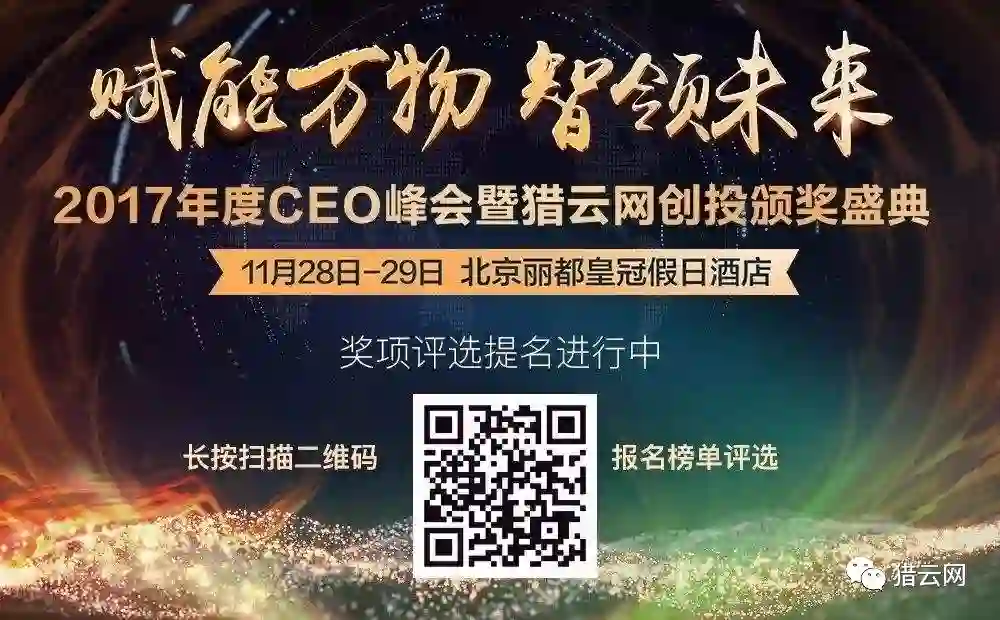 #《赋能万物 智领未来》2017年度CEO峰会暨猎云网创投颁奖盛典#将在11月28-29日于北京丽都皇冠假日酒店举行,近百位知名投资机构大咖、独角兽创始人、创业风云人物,以及近千位投资人及创业者与您相约。