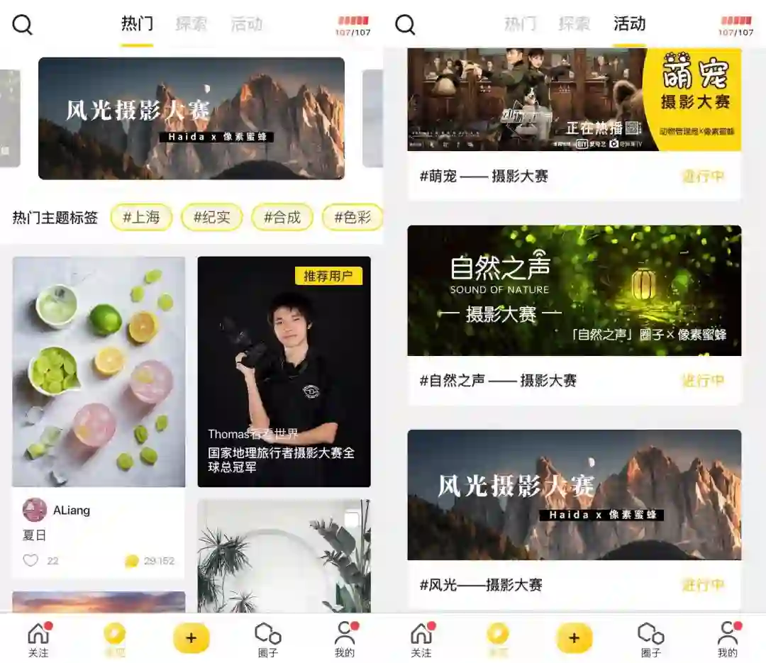 这就是我最近也在用的一款摄影社区了。下图是我在像素蜜蜂的账号,感兴趣的同学可以过来找我。