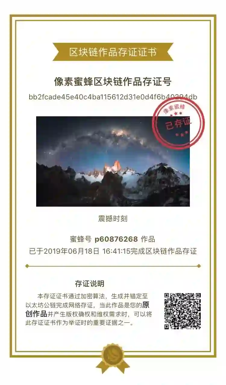 这个独一无二的“存证书”的做法,虽然可能对于浏览内容的用户来说没有太大作用,但对于我们这样的摄影内容发布者来说,也算一颗定心丸了。