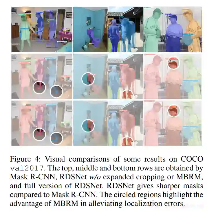 具体来说,一个相关性模块和一个剪切模块被提出来生成实例掩膜,另外提出了一个基于掩膜的精炼边界框模块。在COCO数据集上进行的大量实验分析和比较证明了RDSNet的有效性。