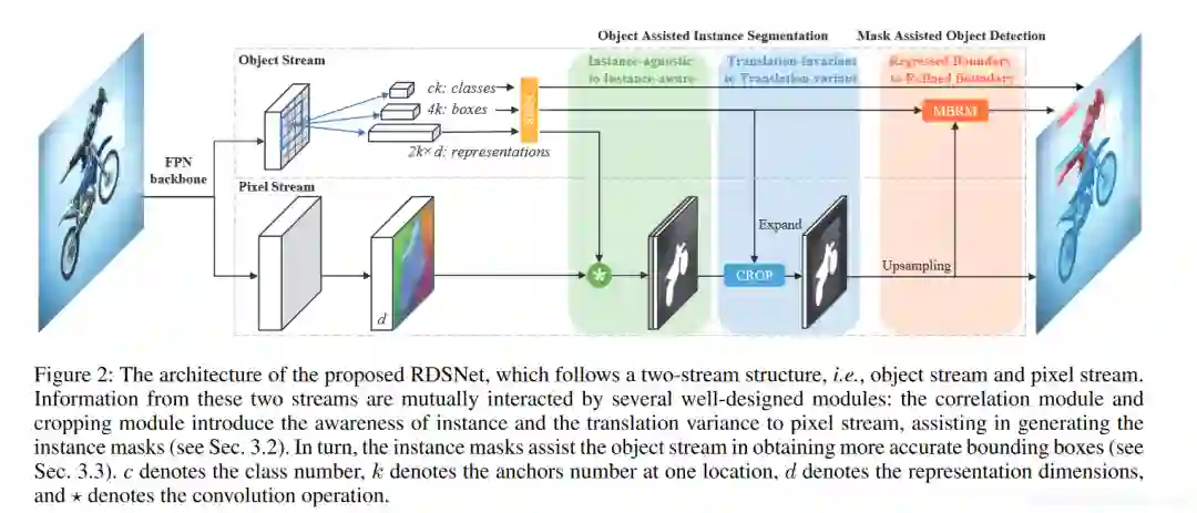 基于上面的观察,目标检测和实例分割有很大的联系,并且是可以相互促进的,而这一点几乎是没有相关研究的。因此,本文提出了RDSNet来共同学习目标级(BBox)和像素级(分割掩膜)特征。