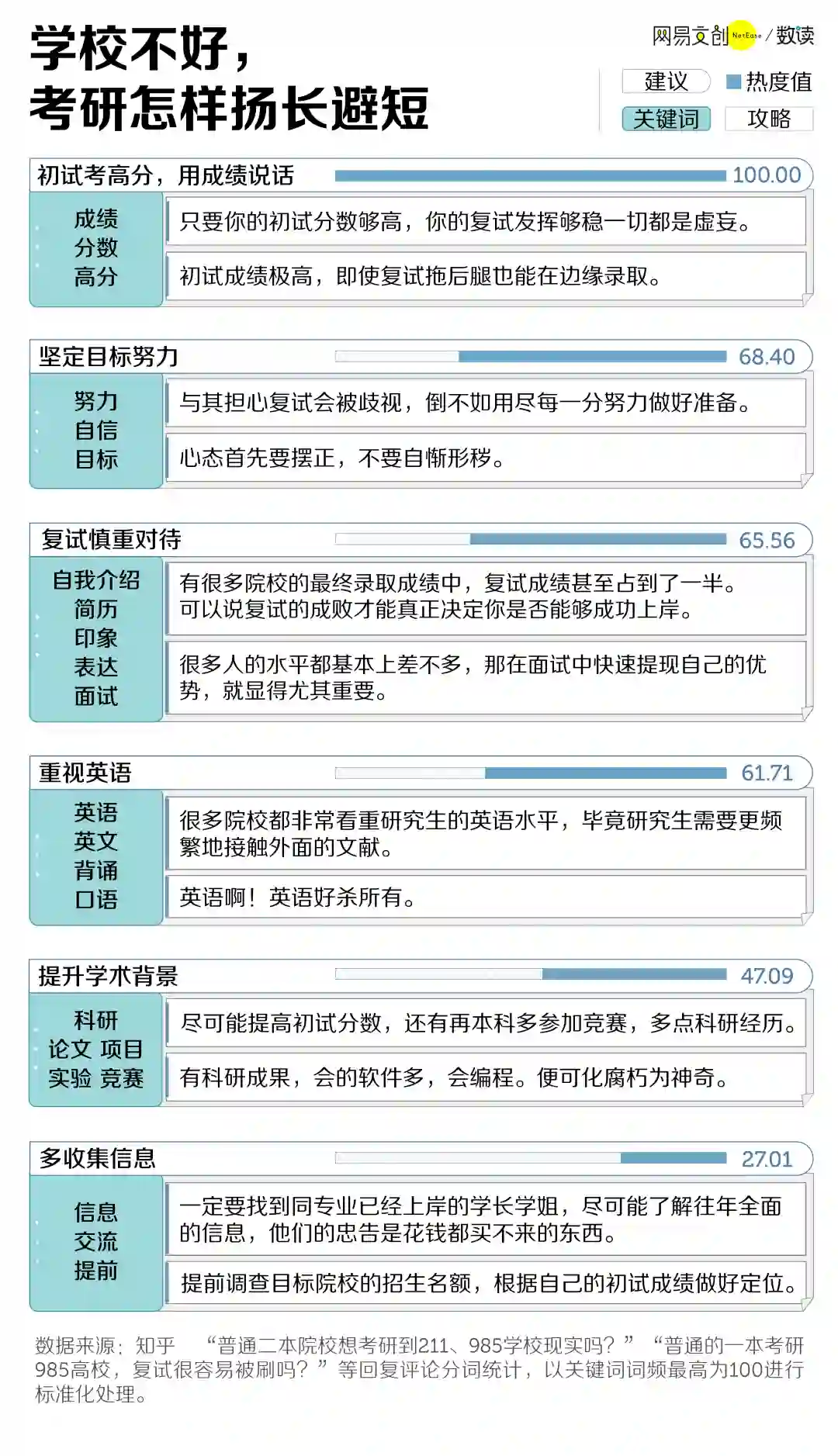 我们统计了知乎网友为普通高校学生考研给出的建议,