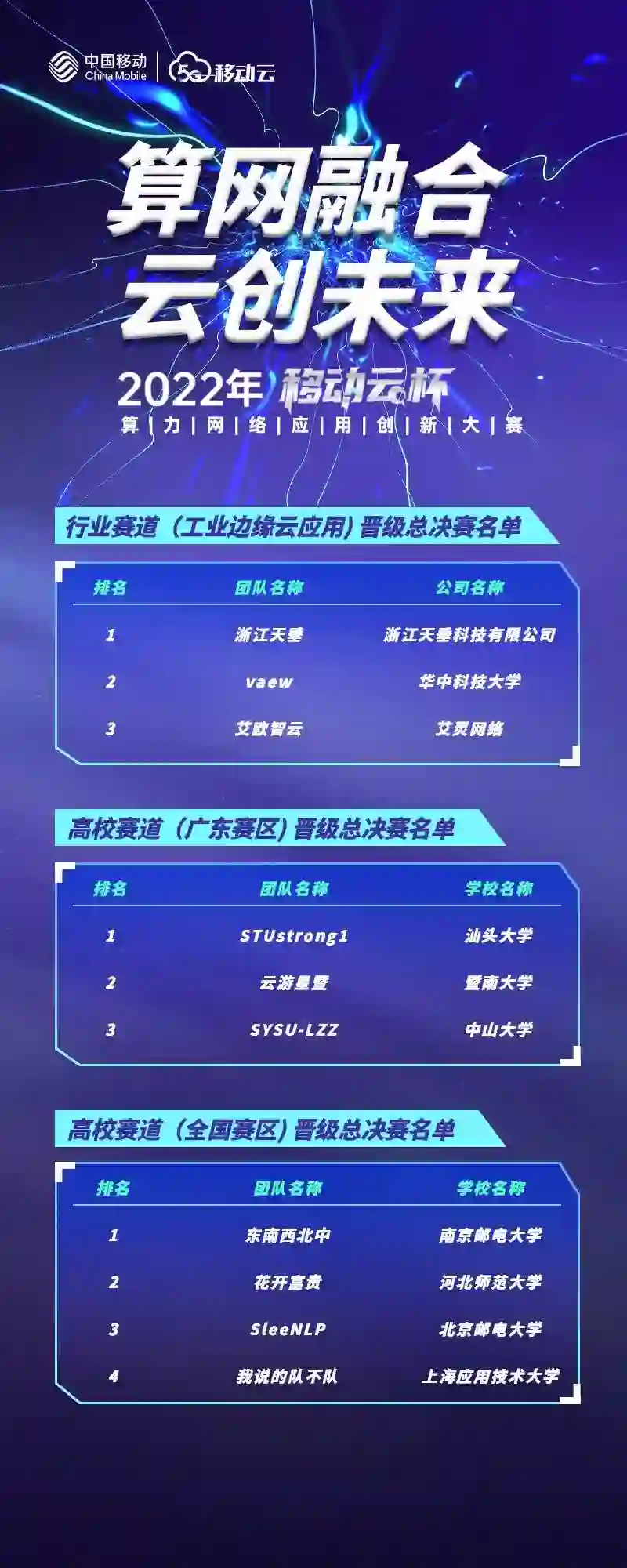 上周,2022年“移动云杯”算力网络应用创新大赛行业赛道(算网应用创新)和移动赛道展开激烈角逐。本周,我们又迎来了行业赛道(工业边缘云应用)赛道决赛和高校赛道(全国赛区&广东赛区)复赛。