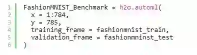 最后举一个AutoML的例子,用一个函数搞定整个机器学习流程,使用的是H2O这个常用的AutoML包,任务是对fashionMinst这个数据集进行分类