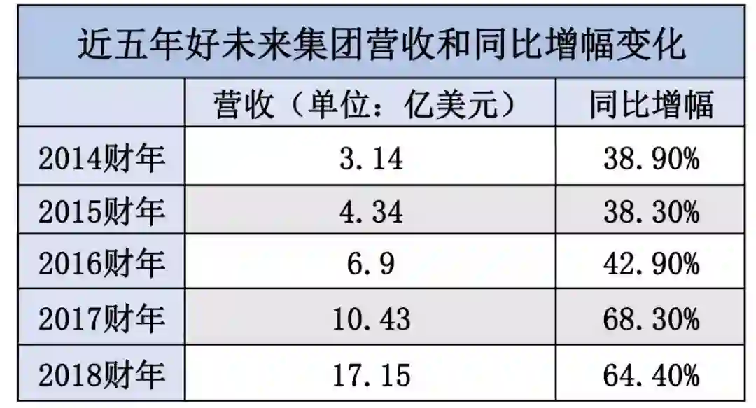 如今,学而思已成为教育界的巨无霸,在43个城市开设了300多个教学中心,线下学生超过了100万,线上注册学员接近2000万,共有员工17000余名。好未来集团近五年的营收增长更是迅猛,尤其近两年,增幅更是超六成。