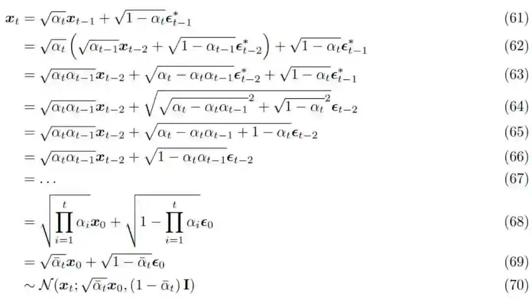 参考已经证明了前向加噪过程可以写为一个高斯分布了。在扩散模型的初始论文