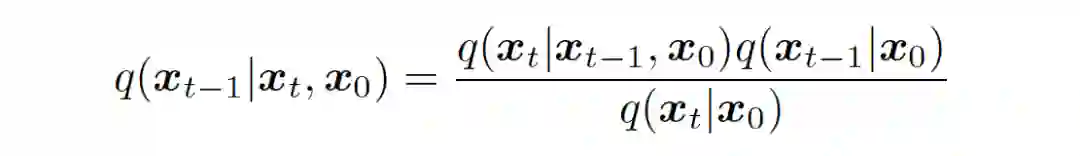 ▲ 对前向加噪过程使用马尔可夫假设和贝叶斯法则后的公式