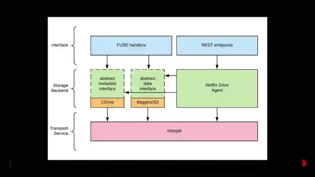 Netflix Drive 包含 3 个层(图 6):接口、存储后端、传输服务。