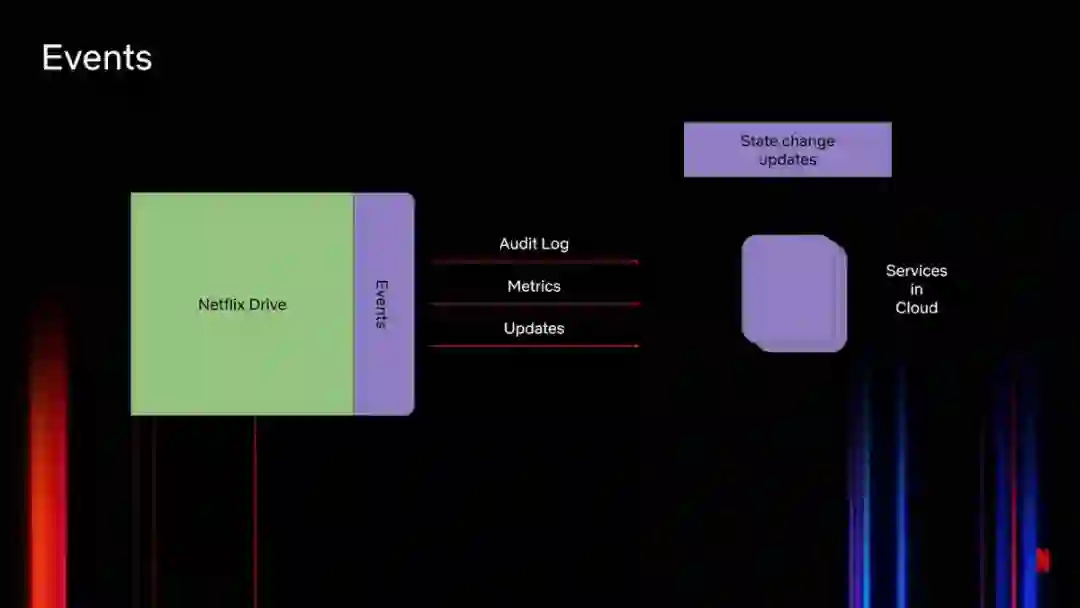 如前所述,事件(图 4)在 Netflix Drive 架构中最为重要,它包含遥测信息。比如,使用审计日志跟踪不同用户对同一个文件所做的所有操作。我们需要在云中运行的服务能够消费审计日志、度量和更新。这里使用了通用框架,允许将不同类型的事件后端接入 Netflix Drive 生态系统。