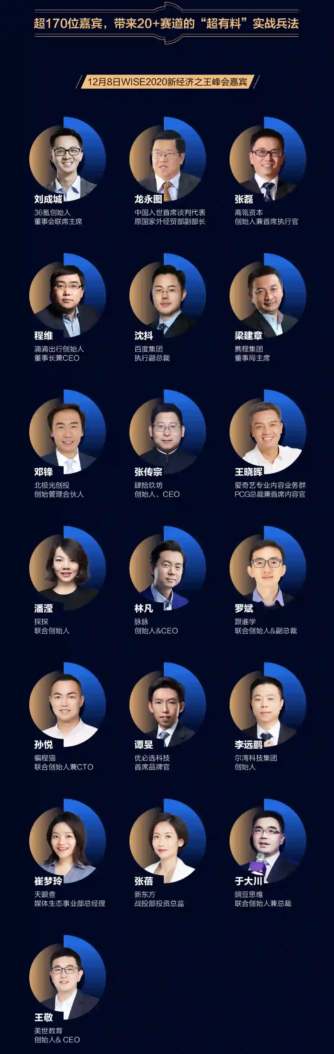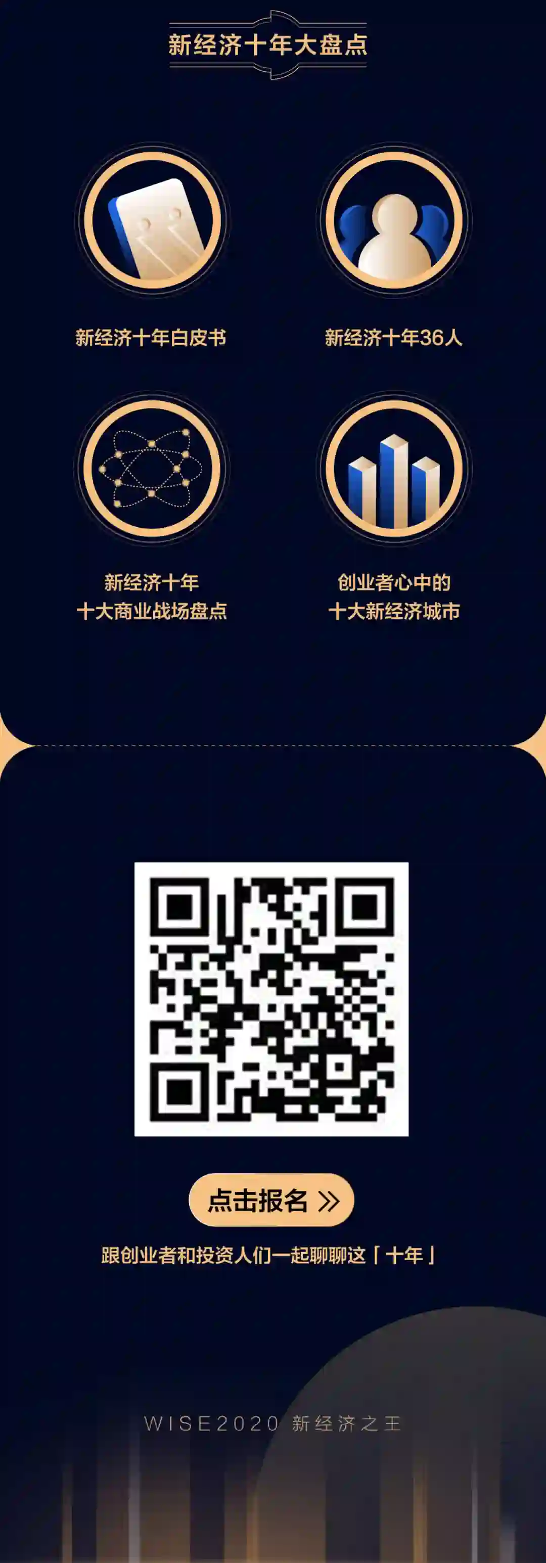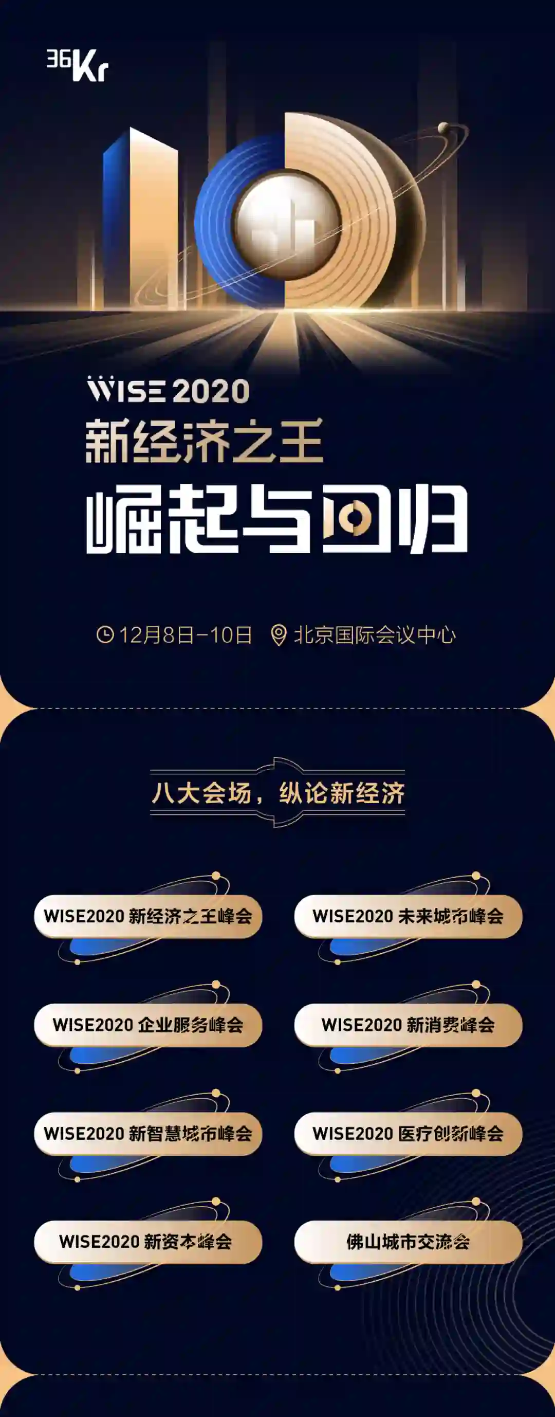 12月8-10日,北京国际会议中心,8大会场、20+热点赛道、170+分享嘉宾,WISE2020新经济之王大会正式进入倒计时,扫描文末二维码或点击阅读原文,立即报名,看见新经济的未来!
