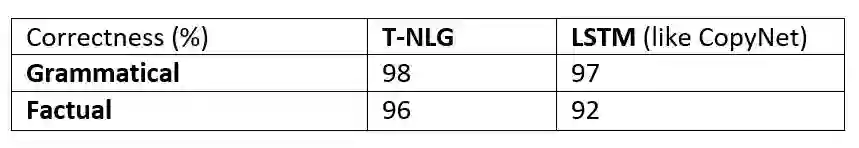 此外,研究人员还请人类标注员来评估 T-NLG 模型与之前的基线模型,结果如下: