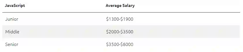而在乌克兰 JavaScript 社区,大约有 8000 名活跃开发者,根据 PayScale 和 SalaryExpert 的数据,乌克兰 JavaScript 开发者的平均月薪为 3600 美元(约 2.2 万元人民币),不同职级对应薪资也有所不同:
