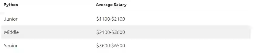 通过调查, DAXX 发现 Python 程序员在乌克兰科技行业的需求量也很大,Python 软件开发人员的平均工资可达每月 3800 美元,其中高级 Python 程序员起步月薪更是最高可达 6500 美元(约 4.1 万元人民币)。