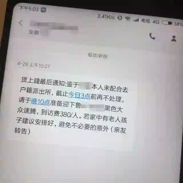 刘珂收到的上门催债信息