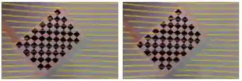 图4 左:在雷达-相机外部标定后,重投影雷达点到图像平面上;右:链式地标定lidar-imu,imu-camera后,重投影雷达点到图像平面上