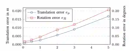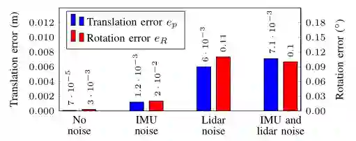 图2 不同雷达噪声下的标定精度。在这些实验中,惯导数据仿真为没有噪声。