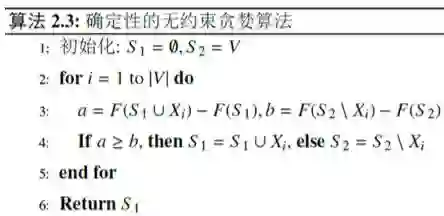 在这种情况下,我们给出一个确定性的贪婪算法。这个算法是这样:刚开始是空集,增加一个节点,这个节点增加的时候,加进来算一算增加量是多少。我们还要考虑假设在整个节点上,性能减掉多少。相比一下看是不是值得增加,如果增加量这个a比较大,那就加上去。我们同样的得到一个和它对应的是另外一个算法,这个算法是我们需要算一个a的增加量和b的减少量,到底我要不要接收这个S,要以一定的概率来考虑,怎么叫以一定的概率呢?我们对于一个给Y变量,让它服从均匀分布,如果这个均匀分布采样得到这个值小于这个东西把这个加进去,这是一个随机的算法。