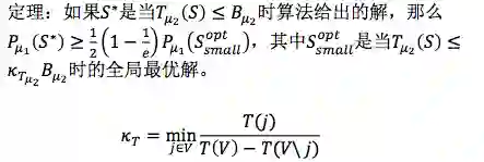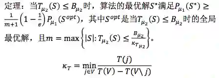 因为它是子模函数,所以我们就可以来分析它的性质。这个就是做机器学习的人特别关心的一件事,就是最好不要只给这个算法,说我这个算法好。你做一些实验是迫不得已的办法,如果你能给出一些理论分析就会觉得比较放心。我们这个定理就是这样的: