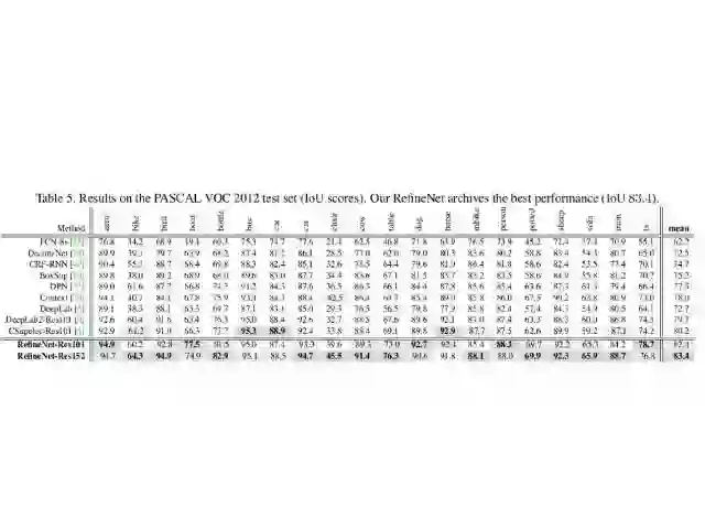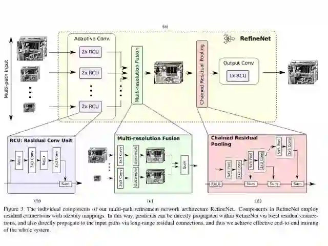 3. 在卷积神经网络中,重复的下采样操作,池化或者步长大于一的卷积都会导致特征图的分辨率下降。我们提出RefineNet通过residual connections使得较深层的网络也可以利用浅层网络的特征。