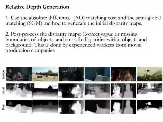 2. 后处理视差图:纠正对象的模糊或者丢失的边界信息,平滑处理对象和背景之间的差异,这是由经验丰富的电影制作公司的员工完成的。