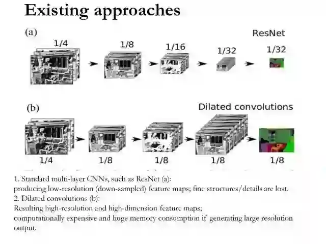 a) 第一种用ResNet,当然VGG也是一样,如果用步长大于1的卷积或者做一次池化的话,网络中的特征图的分辨率会被降采样,最后一般会得到一个原输入图片的1/16或者1/32的低分辨率的输出。