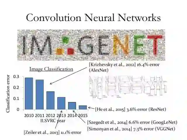 这是深度学习从2012年开始到现在的发展。从ImageNet上的一些结果,可以看得出来这些年深度学习发展的速度非常快。