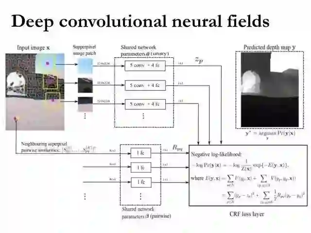 1. 我们的一篇CVPR2016就做了这样一个工作,其中跟深度估计最大的区别就是做像素标记的时候,需要估计的变量是离散的,因为不是连续的,所以做CRF inference的时候,会比较复杂,不可能有闭式解,在离散的情况下,每一次进行梯度计算都需要做一次CRF inference。从计算量的角度来讲是不能忍受的。去年我们有一个CVPR的论文,就是把piecewise近似训练CRF技术跟深度学习结合起来。这样就避免了每一次算梯度需要做CRF inference。这个算法的优点就是:unary term和 pairwise term是可以分开进行训练的。
