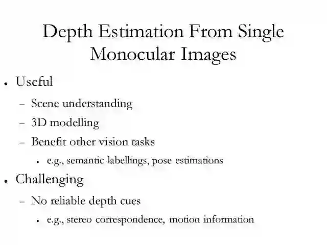 直接从单幅图像中估计出深度信息本身是一个非常有用的,当然也是非常困难的问题。这里给出了一些可能的应用场景和挑战。
