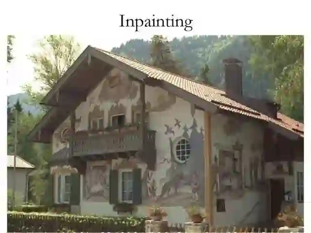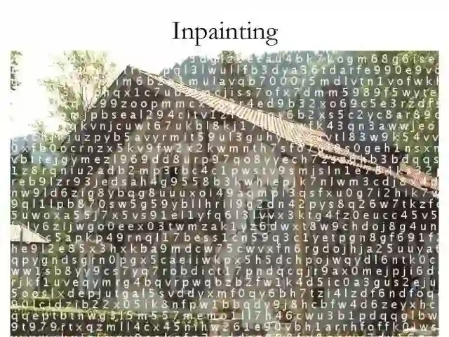 最后一个应用的例子是做图像修复。就是给出一张像这样受到损坏的图片,这个模型也可以把原始图片恢复出来。
