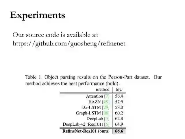 这里是在不同数据集上得到的结果,代码已在github上开源: https://github.com/guosheng/refinenet