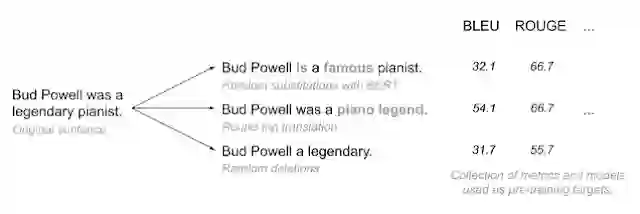 在 BLEURT 的数据生成过程中,随机打乱语序并使用已有的指标和模型进行评分