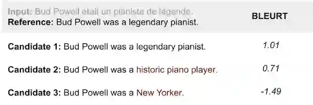 在“BLEURT:学习稳健的文本生成指标”(BLEURT: Learning Robust Metrics for Text Generation)(已于 ACL 2020 期间公布)一文中,我们提出了一种可以评分的全新自动化指标,该方法不仅可靠,还可达到出色的质量水平,其评估结果更接近人工标注的效果。BLEURT (Bilingual Evaluation Understudy with Representations from Transformers) 基于迁移学习的近期研究成果之上构建,可以捕获句子转述等广泛使用的语言特征。您可以在 Github 上获取该指标的实现代码细节。