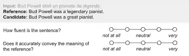 如果采用人工评估,则需向标注人员提供一段生成文本,以便他们基于文本流畅性及意义来评估内容质量。这类文本通常会与人工的文本或从网络中截取的参考文本并排显示。