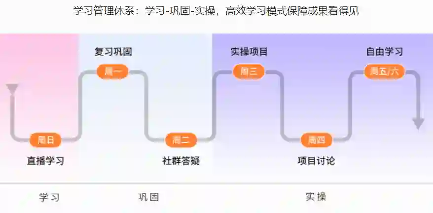 课程在一周内每天都设置了相应的复习任务,利用零散时间就能对周末的课程进行巩固学习,课程安排如下: