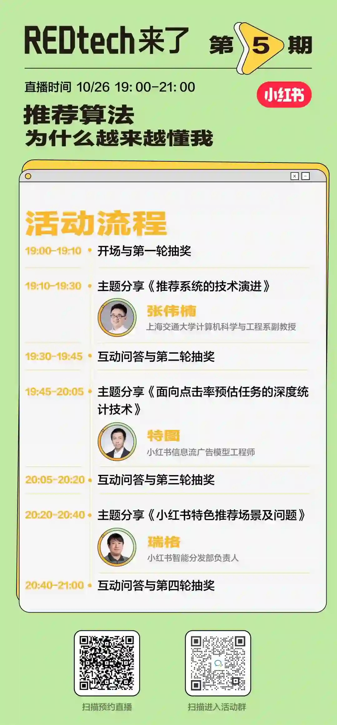 10月26日,由小红书技术团队出品的技术直播节目【REDtech 来了】第五期《推荐算法为什么越来越懂我》即将开播。