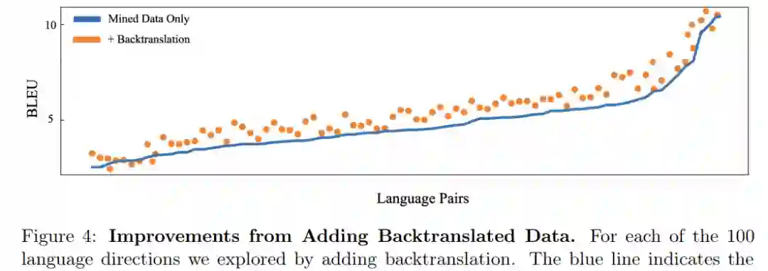 具体而言,研究者使用反向翻译策略作为已经挖掘语言对方向训练的补充,将合成反向翻译数据添加到挖掘的并行数据中。此外,研究者还使用反向翻译策略为以往无人监督的语言对方向创建数据。