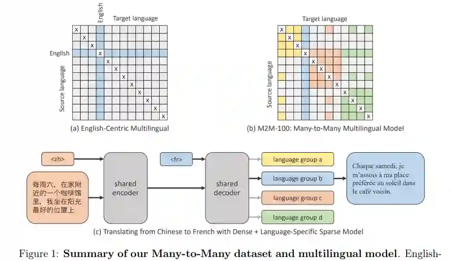 具体而言,通过使用新的挖掘策略来创建翻译数据,该研究构建了首个真正的多对多数据集。该数据集拥有 100 种语言的 75 亿个句子。研究者使用可扩展技术来建立具有 150 亿个参数的通用模型,它从相关语言中捕获信息,并反映出更加多样化的语言文字和词法。目前,这项研究已经开源。