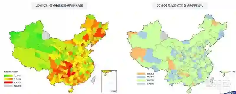 ▲2018Q3中国城市通勤高峰拥堵热力图