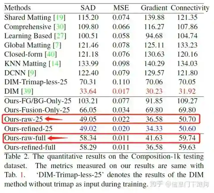 然而进一步阅读论文,我发现一个非常惊人的地方,作者们在论文正文的4.1. Results on Synthetic-Composite Adobe Dataset (这里Adobe Dataset 就是 CVPR 2017 Oral Deep Image Matting所提供的dataset,也是我上文复现用到的数据集) 相当明确地写道: