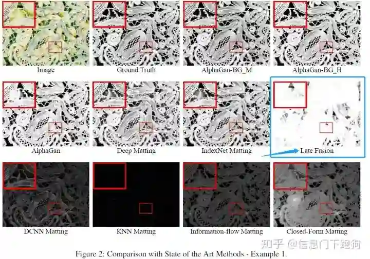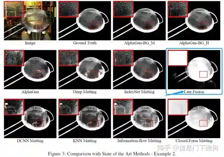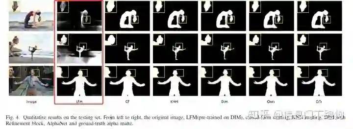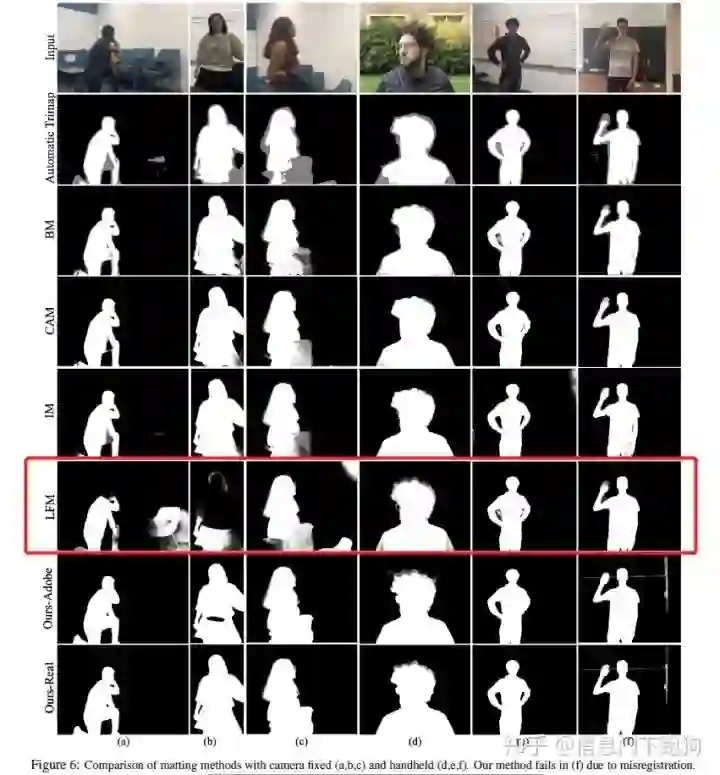 而恰好在LFM论文的Figure 6里面,也用到了与上面Figure 2一样的前景进行抠图。下图Figure 6 红色框框住的部分就是用相同前景合并了不同背景后LFM报告的结果。