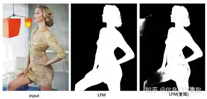 面对号称能对自然图像自动化抠图这样的claim,通过简单的推理,首先就有一个简单的疑问,如果图A里面有个女人,LFM能成功抠出来;现在有个图B有个马,LFM又能成功抠出来。那么我用图B作为背景图和图A做合成图,那么扣的是女人还是马?或者直接拿一个有一个女人和马的图片,那么会输出什么?没有任何的指定,怎么知道要抠什么?这是在做显著性检测吗?由于官方github中并没有放出任何代码(截止至2020.04.08),所以不得而知了。