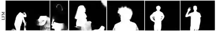 the background that were larger than the foreground person; the result of retaining the largest connected component would then mean losing the foreground subject altogether, an extremely objectionable artifact. Rather than continuing to refine the post-process for LFM, we simply did not apply a post-process for its results. As seen in the videos, LFM, in any case, had quite a few other artifacts that made it not competitive with the others.