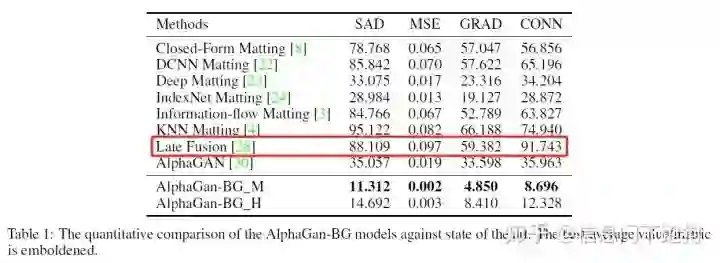 首先要提到的是在LFM的实验中,作者采用了上文中提到的2017 CVPR Oral Deep Image Matting提供的Adobe Deep Image Matting Dataset数据集 进行训练并且基于这个数据集的测试集进行测试,来佐证LFM能够在任意RGB图像上都能够进行抠图