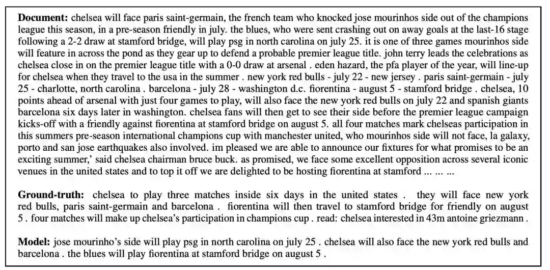 正如研究人员指出的那样,文本摘要旨在根据输入文档生成准确而简洁的摘要。生成摘要并不是简单地复制输入里的片段,而是可能产生新的单词或涵盖主要信息,并使输出保持语言流畅。