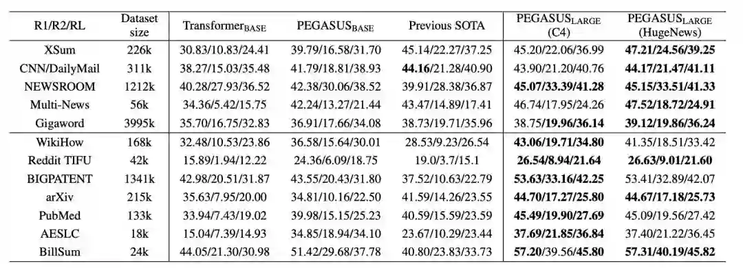 ,这些任务涵盖新闻、科学、故事、使用说明、电子邮件、专利和立法法案等,并且在低资源摘要方面表现“惊人”,在只有1000个样本的6个数据集上超过了之前的最好结果。